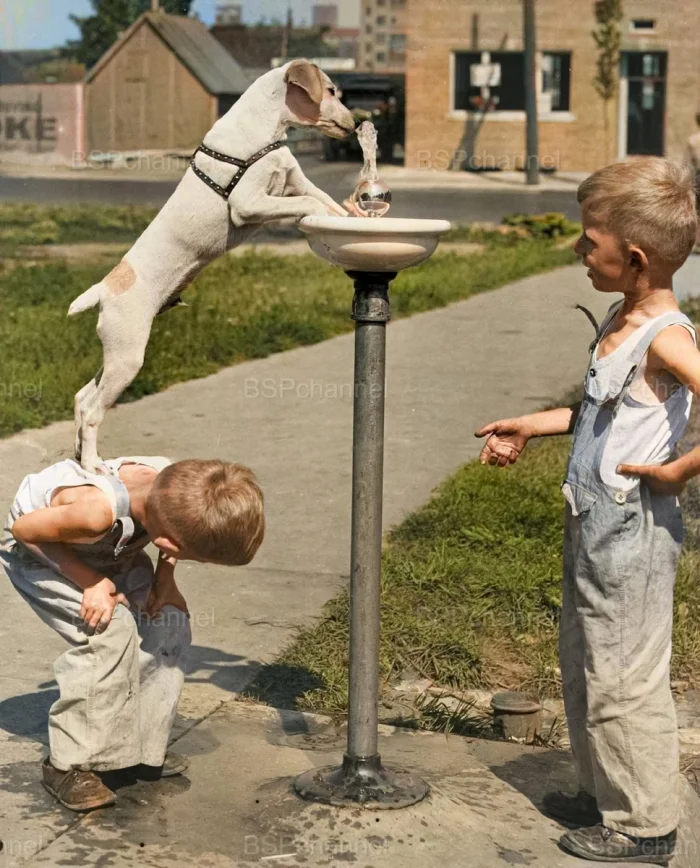 Представляю вам подборку из 20 уникальных исторических фотографий, которые я не просто собрал, но и раскрасил, чтобы оживить эти моменты прошлого. Здесь вас ждут улыбки, курьёзные ситуации и трогательные сцены — настоящая летопись собачьей жизни в кадре!