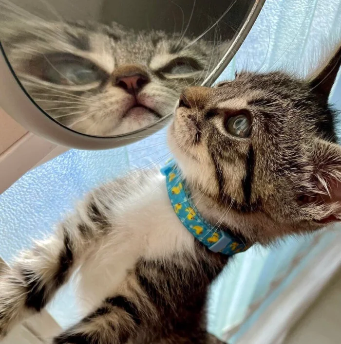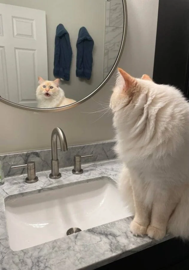 Нередко можно заметить, что питомцы удивительно напоминают своих владельцев. Возможно, именно поэтому многие кошки обожают подолгу рассматривать своё отражение в зеркале. Кто же устоит перед соблазном полюбоваться такими великолепными усами и очаровательными пушистыми щёчками? Некоторые представители кошачьих будто бы не замечают зеркал, однако это вовсе не избавляет их от забавных моментов.