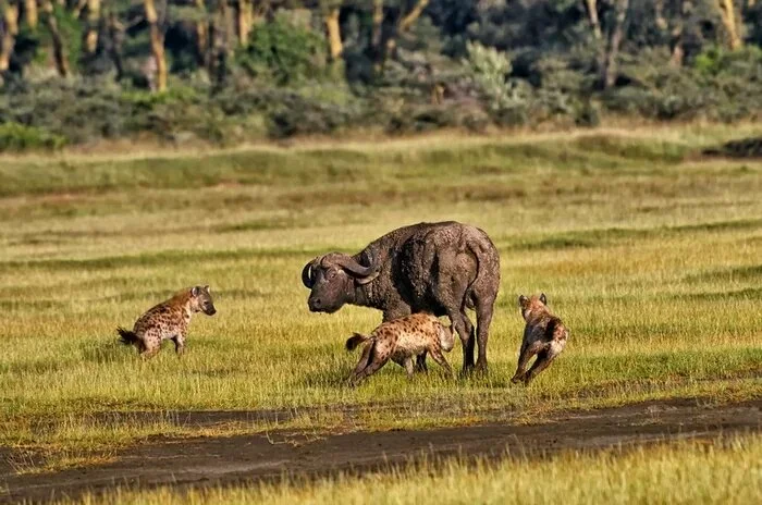Гиены мастерски используют свою численность, организуя слаженные группы для охоты. Их добычей становятся не только антилопы, но и буйволы, жирафы и даже молодые слоны. Эти хищники — полноценные конкуренты львов, чей рацион на 95% состоит из свежего мяса. Хотя нельзя не отметить их особую любовь к падали!