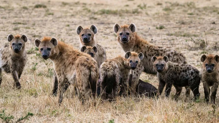 Самки не просто крупнее и сильнее — их поведение кардинально отличается. Они активнее участвуют во внутристайных конфликтах, создают коалиции и поддерживают сородичей, тогда как самцы обычно остаются в тени. Интересно, что несмотря на физическое превосходство самок, социальные лифты для самцов всё же существуют — гиены ценят коммуникативные навыки выше грубой силы.