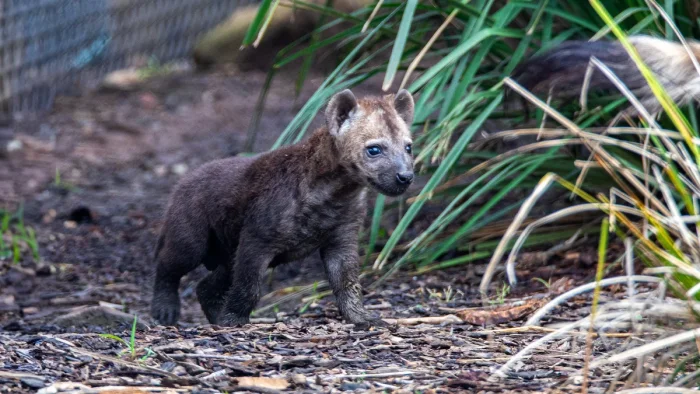 Этот самоуверенный малыш — детёныш гиены возрастом несколько дней.