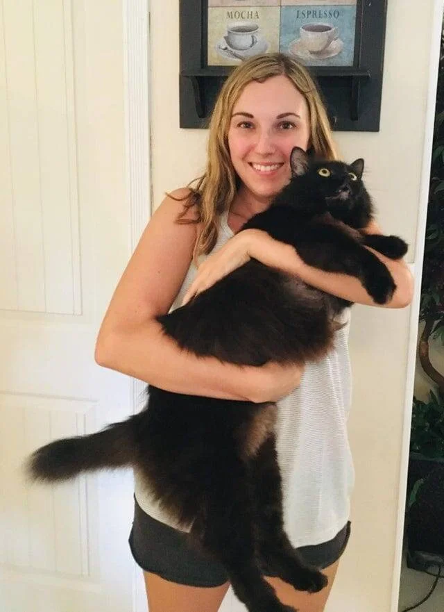 Кот в сравнении с девушкой ростом 165 сантиметров
