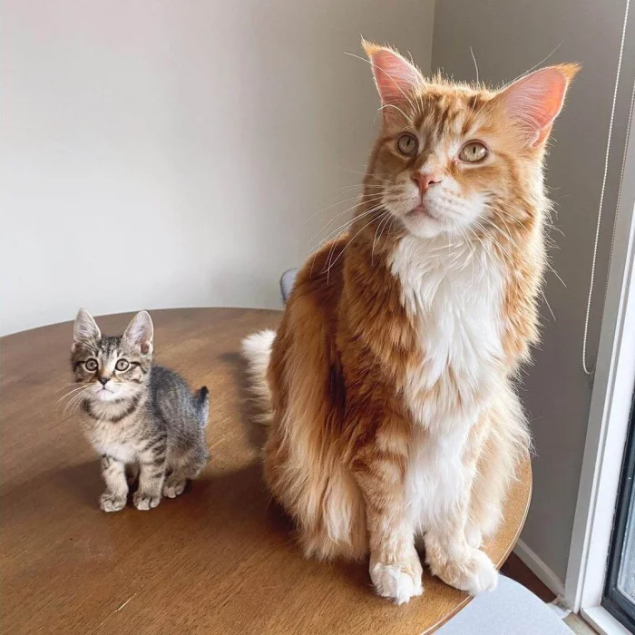 Обычный котёнок в сравнении с мейн-куном