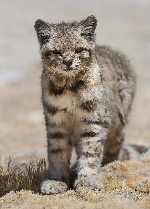 Познакомьтесь с андской кошкой — это один из наиболее редких и малоисследованных хищников нашей планеты. Местом её обитания являются высокогорные районы Анд, где её можно встретить на высоте от 3000 до 5000 метров. Известно, что это небольшое животное, длина которого составляет примерно 60-70 см. У неё длинный пушистый хвост, густая шерсть серо-пепельного оттенка и тёмные кольца на хвосте.