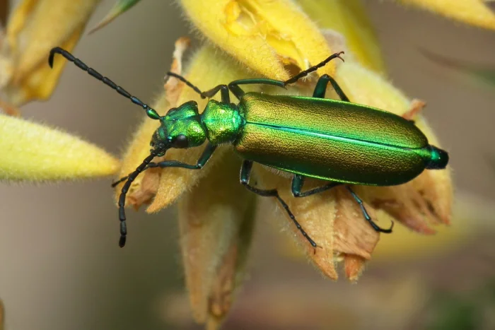 Знакомьтесь — шпанская мушка, или шпанка ясеневая (Lytta vesicatoria). Несмотря на название, это вовсе не мушка, а небольшой жук длиной один-два сантиметра из семейства нарывников. И это семейство получило своё название не случайно.
