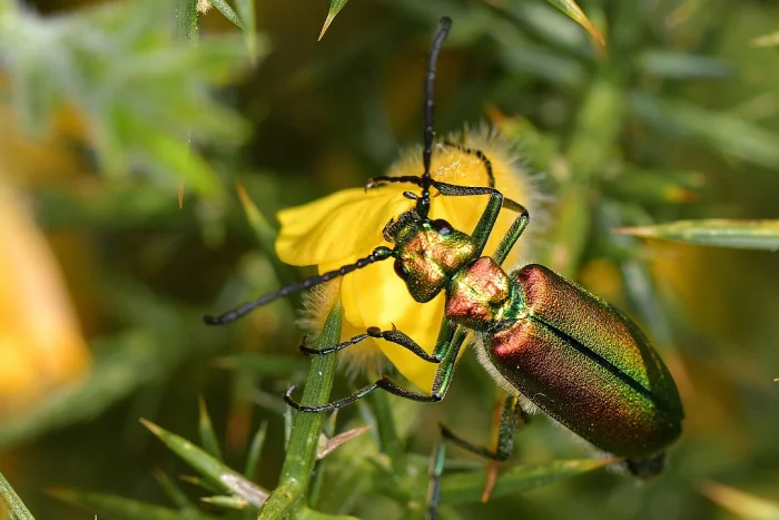 Сам жук довольно вреден. Его личинки развиваются в гнёздах земляных пчёл, питаясь их мёдом, а взрослые особи объедают деревья, оставляя от листьев только черенки и центральные жилки. В странах Средиземноморья нашествия этих насекомых могут уничтожать целые плантации олив. Вот вам и вся любовь 😉