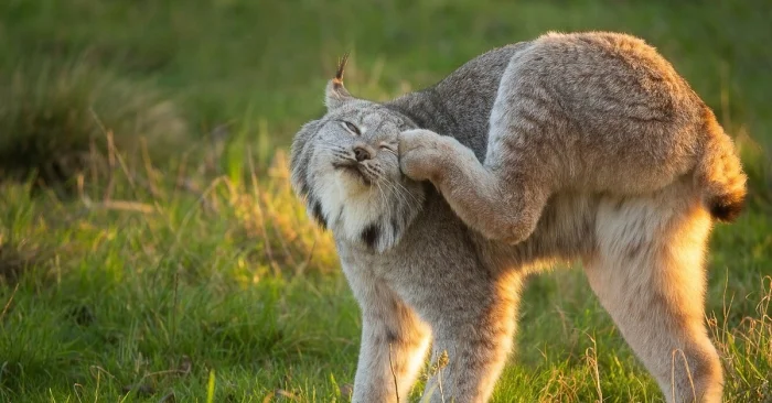 Задние лапы у рыси куда длиннее передних. Это позволяет им делать длинные и мощные прыжки, но попа при этом всегда находится выше головы.
