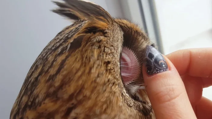 Огромные уши совы спрятаны под слоем перьев и способны слегка напугать того, кто решит приласкать эту хищную птицу.