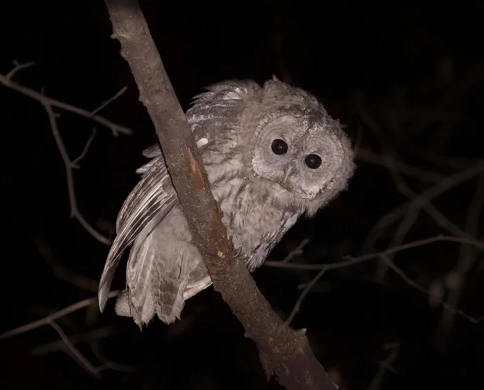Постоянно скрываться в убежище, избегая разъярённой толпы, к сожалению, невозможно. Рано или поздно голод даст о себе знать, громко напоминая о необходимости поиска пищи. Ведь калории не появятся сами по себе. Поэтому, дождавшись наступления темноты, сова отправляется на охоту. Основные инструменты для ориентации в ночном лесу у этой птицы — это зрение и слух. Её удивительные глаза, которые словно завораживают, занимают около 70% всего черепа! Однако важна не только их величина, но и форма. Глазное яблоко совы больше напоминает грушу. Такая особенность позволяет максимально увеличить размер и чёткость изображения, попадающего на сетчатку в задней части глаза. Благодаря этому совы видят в темноте в 2,5 раза лучше, чем человек.