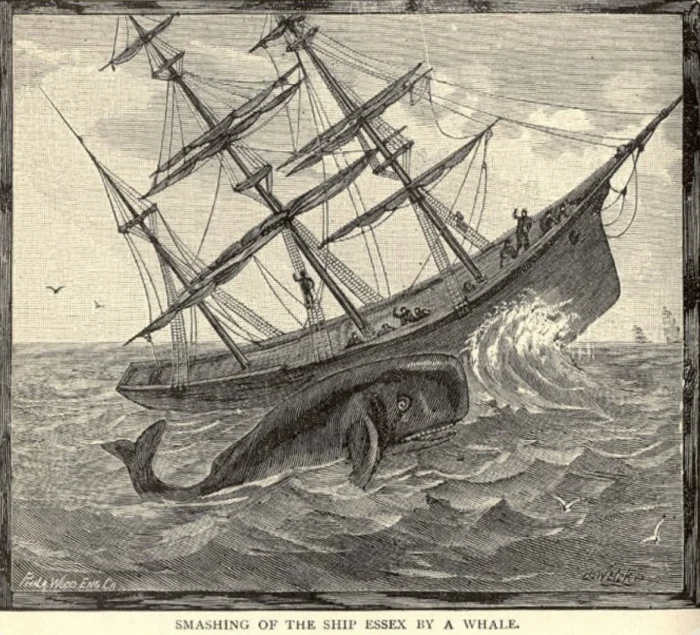 За 30 лет до выхода «Моби Дика», в 1820 году, мир потрясла история, от которой стынет кровь: китобойное судно «Эссекс» было уничтожено кашалотом. Огромное животное протаранило 27-метровый корабль, пробило обшивку и ушло в глубину, избежав гарпунной атаки. Судно быстро затонуло, а уцелевшие моряки остались в лодках посреди океана, примерно в 2000 километрах от ближайшей известной земли. До цивилизации в итоге смогли добраться лишь восемь членов экипажа. Именно эта трагедия позже вдохновила Германа Мелвилла на создание «Моби Дика».