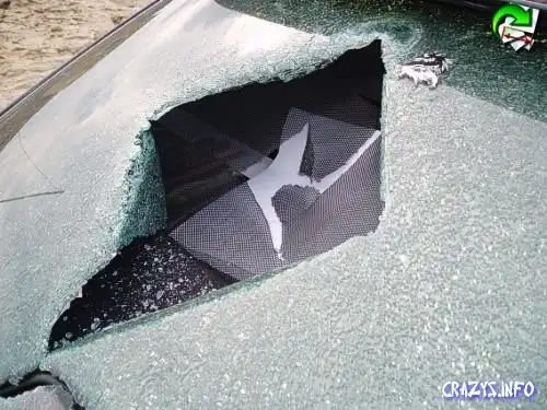 BMW 540i ехал по шоссе. От встречной фуры оторвался кусок железа длинною 29 cm и попал в лобовое стекло BMW, пролетел черезвесь салон и вылетел через заднее стекло. Водитель BMW отделался испугом и небольшой царапиной