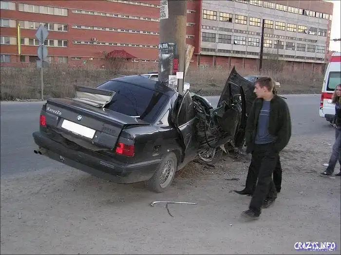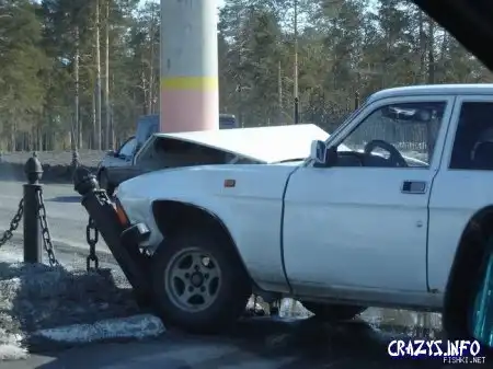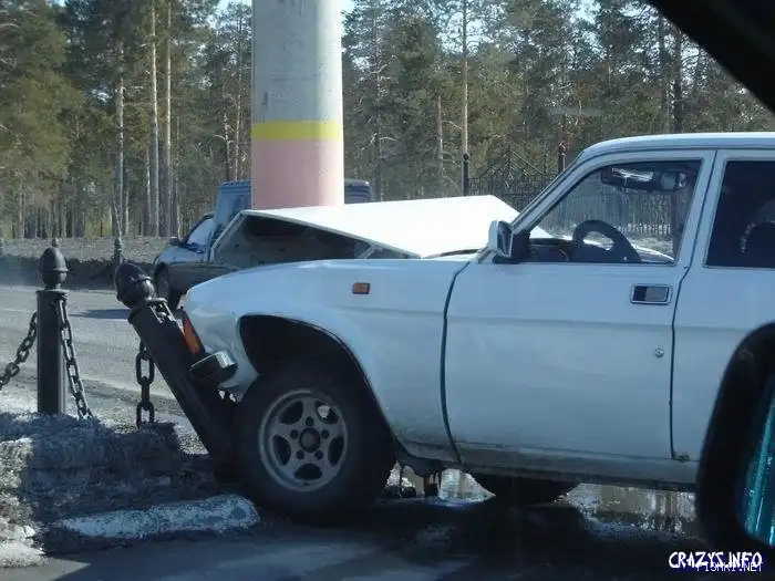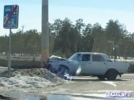На первых фотках машина окружила столб