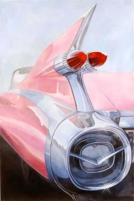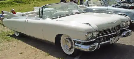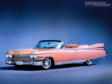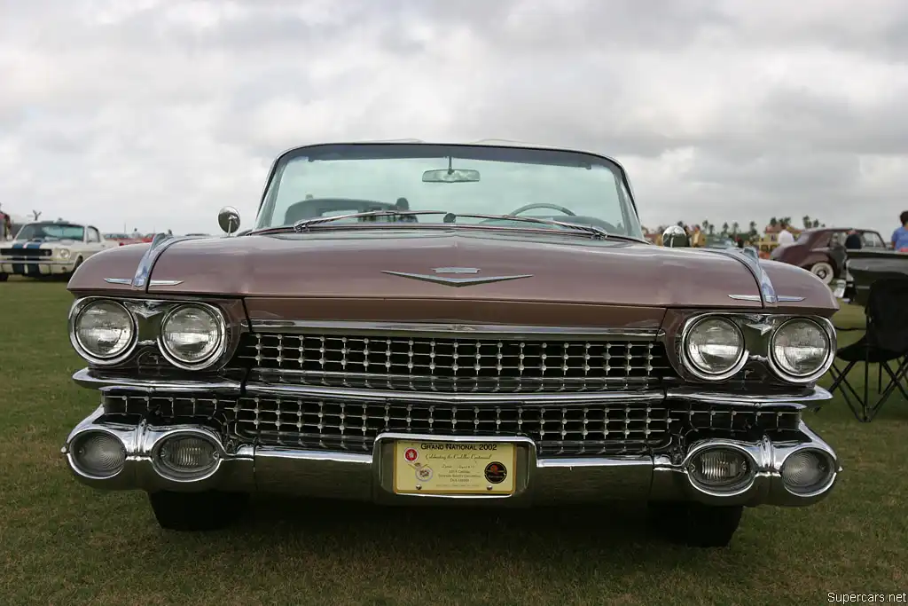 Именно в 1959-м году объёмы продаж Eldorado выросли в полтора раза (особенно пользовался популярностью открытый вариант). Причин тому было несколько: невероятная роскошь (куча всяких модных штучек, коими не каждый современный автомобиль располагает, как то электростеклоподъёмники, электропривод крыши, хитрый гидрокорректор фар, выключающий автоматически дальний свет при приближении встречного автомобиля и многое другое), мощный двигатель (здоровенный V8 с отдачей в 345 сил) и, разумеется, неповторимый дизайн. Хотя в 59-м все Кадиллаки имели одинаковый перед (в общем-то после такого рода унификации и начался закат аэростиля), тем не менее Eldorado выделялся из общей "толпы" за счёт здоровенных "килей" (хотя сами понимаете, насколько они небезопасны; интересно, какое количество американских кишок на них намоталось?). А ещё куча хрома, задние фонари, словно турбины реактивного истребителя. Но вскоре аэростиль канул в лету и буквально через несколько лет от былой помпезности и следа не осталось (а жаль).