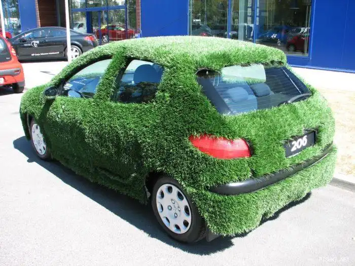 Это не трава, это искуственный мех... Или пластик, как у нас ставят искусвенные елки на Новый год, вот тут тоже трава такая, как иголки у пластиковых елок.