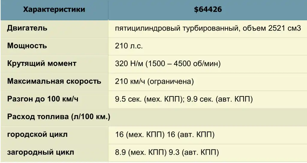 КОМПЛЕКТАЦИЯ ПРОТЕСТИРОВАННОГО АВТОМОБИЛЯ