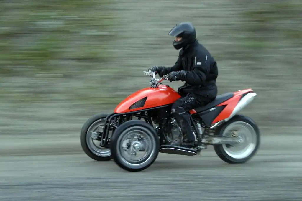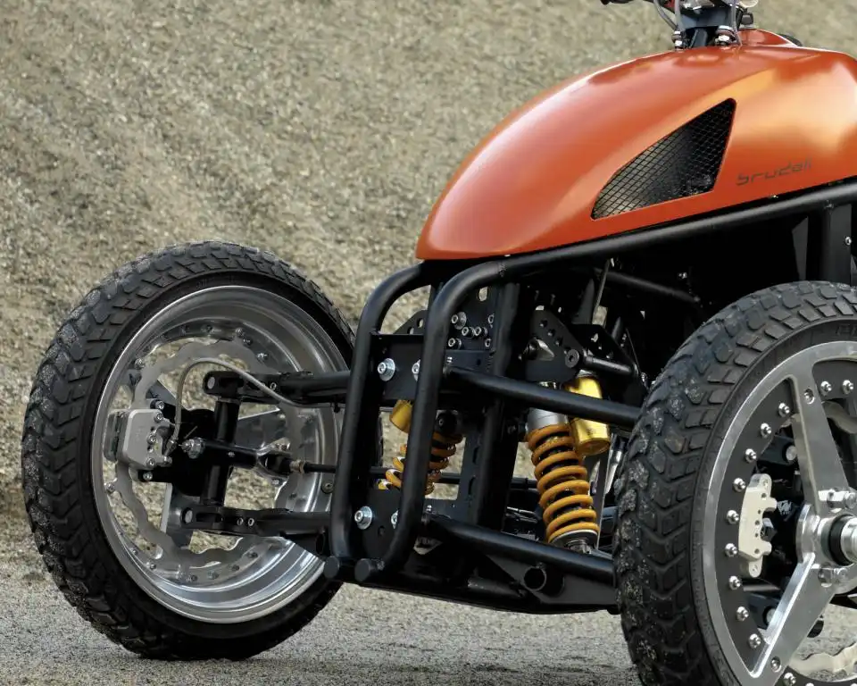 Торможение в повороте, может привести в проблемам на мотоцикле, но так как на Brudeli стоят два колеса спереди, это во много раз увеличивает устойчивость и безопасность.