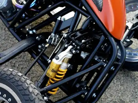 Передние колеса могут наклоняться до 45 градусов, причём этот параметр можно настроить.