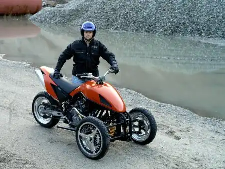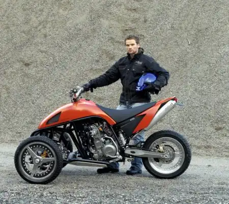 Если смотреть на Brudeli сбоку, ясно выражаются очертания KTM. Это не спроста, двигатель, трансмиссия, заднее колесо - вся задняя часть позаимствована у KTM 625 SMC.