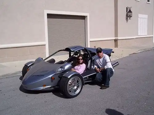 Этот 3-колесный мотоцикл рассчитан на двух пассажиров, сидящих рядом, имеет сиденья как у автомобиля, ремни безопасности, ручную коробку передач, при этом куда более безопасен, чем обычный мотоцикл.