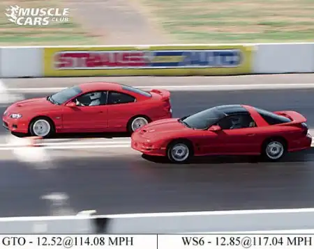 Оба ярко-красных красавца оснащены 6-ступенчатой, механической коробкой передач, системой “NOS” (Trans Am – 125-сильной, GTO – 100-сильной) и “Street Radial” шинами. Следует отметить, что к моменту испытаний Trans Am накатал 41 тысячу миль, обзавелся тюненым MAF-сенсором, выхлопной системой, а так же системой холодного впуска. GTO, представленный к тесту, напротив, в стандартной конфигурации и с заводскими параметрами настройки “PCM”, но с дополнительными 18-ю куб. дюймами под капотом.
