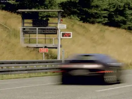 Так при скорости 205км/ч нос автомобиля опускается на 5 сантиметров и выдвигается задний спойлер. Эффект поразительный. Водитель чувствует, как зад автомобиля буквально вжимает в дорогу.