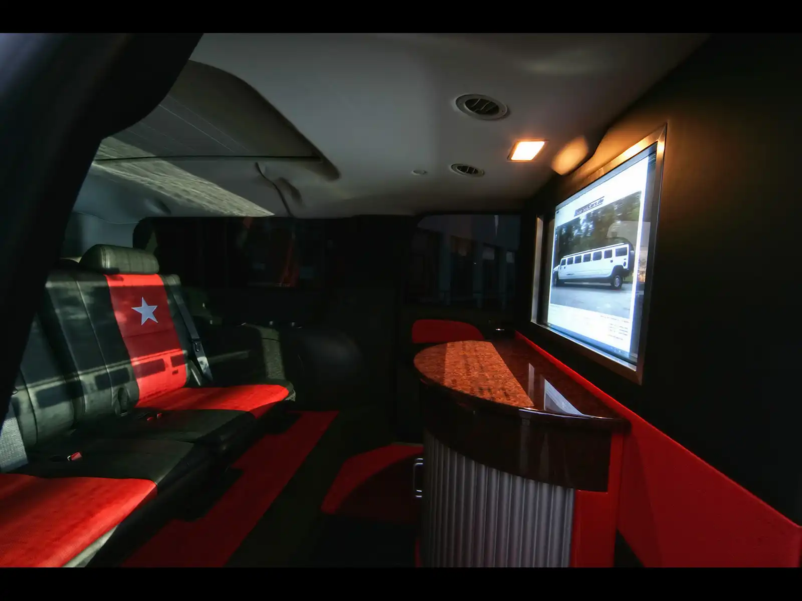 The interior also features an especially exclusive design: The red and black leather seats with STAR FORCE logo are custom-made by GeigerCars.de as is the rear partition wall with retractable glass pane. A Toshiba LCD projector can beam the images of either digital TV broadcasts or a DVD onto the glass pane coated with a special holographic projection surface foil. The accompanying sound comes from a Hi-Fi system with more than 1,000 watts of power and loudspeakers and subwoofer custom-calibrated to the Escalade’s interior.