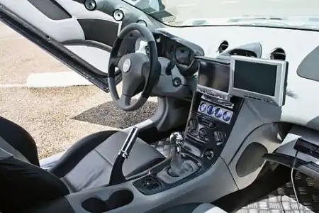 В интерьере используется кожа, но главное это мультимедийный комплекс. Это голова - KVT 675 Kenwood, на передней панели два TFT монитора и модуль подключения PlayStation 2....