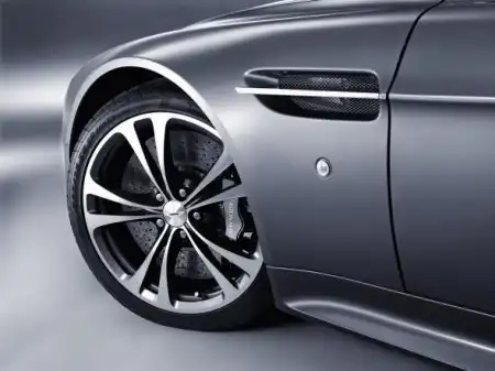 Действие третье — титановое шасси.Стабилизировать динамику болида, Loader1899 решил за счёт специального титанового «4-way»-шасси, где имеется возможность регулировки в степени сжатия и растяжения. Цена данного спортивного шасси составляет от 10 800 евро. Как известно, тюнер Loder1899 имеет тесное сотрудничество с производителем эксклюзивных дисков компанией Kahn Design, которая предлагает для ряда моделей Aston Martin многоспицевые диски серии «RS-V» в 20-дюймовом формате. Комплект таких дисков стоит от 7 000 евро.В данном случае, Aston Martin V8 Vantage был оборудован топ-вариантом — 21-дюймовыми дисками серии «Hollow Spoke» с шинами размерности 255/30 ZR21 на передней оси и шинами 295/25 ZR21 на задней. Цена данного комплекта колёс составляет в Европе от 6 000 евро.