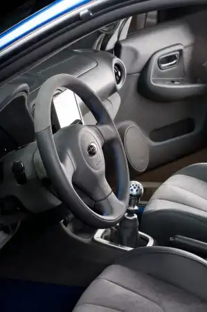 Натуральной кожей и алькантарой были обшиты ручка переключения КПП, ручка стояночного тормоза и центральный тоннель, украшенный металлическими вставками. Комбинированное оформление руля включило в себя материалы трех видов: натуральную серую кожу, серую алькантару и натуральную серую кожу с перфорацией, которую использовали при отделке нижней половины руля. Кресла также были перешиты серой алькантарой (центральные части) с отделкой по бокам натуральной серой кожей.