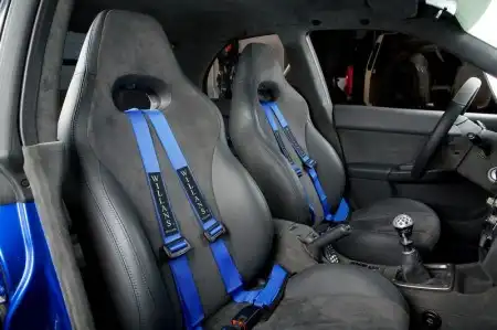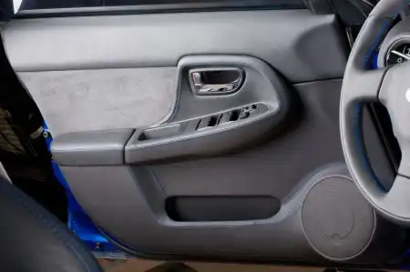 Еще одна группа задач была поставлена в направлении рестайлинга салона автомобиля. Здесь необходимо было не только провести перешив салона натуральной кожей и алькантарой, но и сделать это так, чтобы сохранить спортивный стиль самой машины. Все-таки, Impreza WRX STI – это концептуальное воплощение гоночного духа автомобилей Subaru, требующее единения интерьера и экстерьера. Для салона было предложено цветовое решение, сочетающее в себе серую натуральную кожу, серую и синюю алькантару и двойную синюю отстрочку, гармонично дополняющую комбинацию двух фактур.