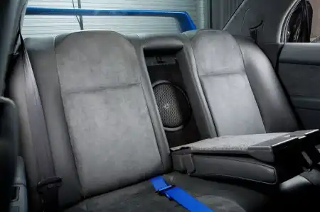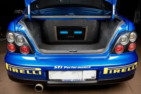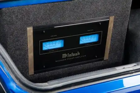 Сабвуферный динамик Peerless PCA 830876 был установлен в заднюю стенку багажного отсека. Поскольку сабвуфер работает в акустическом оформлении «фазоинверторный корпус», то тоннель фазоинвертора был выведен вверх – в район задней полки. Задняя полка также была перешита серой алькантарой. В багажном отсеке был установлен 6-канальный усилитель McIntosh MCC 406. В схеме было реализовано многополосное усиление, причем сабвуфер Peerless PCA830876 работает с двумя каналами усилителя McIntosh MCC 406, подключенными в мостовом режиме.