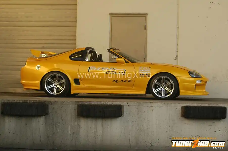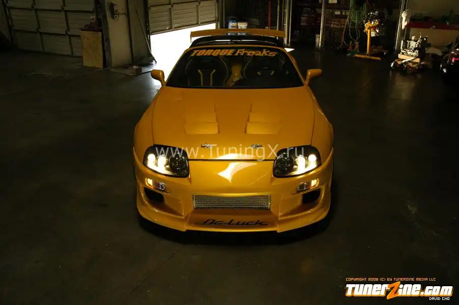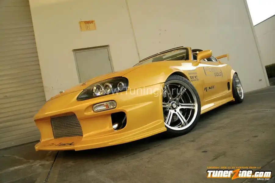 Полностью металлический вайдбоди-кит, передний бампер и пороги Do-Luck, индивидуально изготовленный задний диффузор, карбоновый капот Top Secret Modellista, карбоновое антикрыло JSP, модифицированный третий стоп-сигнал, удаление ручек дверей, лючок бензобака Sparco, желтая краска DuPont.