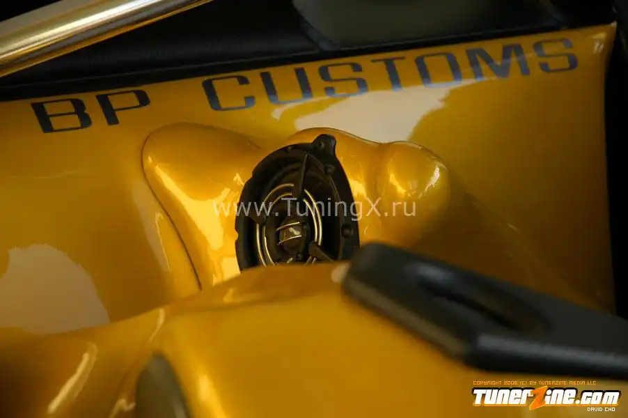 Звуковая система Phoenix Gold, головное устройство Pioneer, компоненты Phoenix Gold Xenon 5.0, 12-дюймовые сабвуферы 12D2, 20-дюймовый экран Sharp LCD в багажнике, 8-дюймовый экран Pioneer впереди.