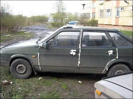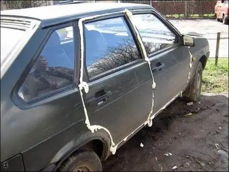2-й вариант: Обезумевший хозяин сам заклеил своё авто,