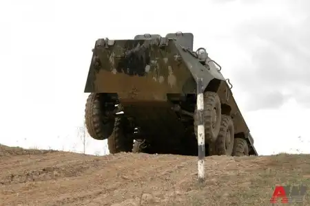 Однако оценивать БТР мерками гражданских автомобилей абсурдно. Это понимаешь, как только выезжаешь на полигон. Огромная бронированная машина с невероятной легкостью штурмует метровый брод, из которого любой «штатский» внедорожник пришлось бы вытаскивать на буксире. БТР даже не буксует - независимая торсионная подвеска, постоянный полный привод и самоблокирующиеся дифференциалы приходятся здесь как нельзя кстати. Впрочем, глубина водоема не имеет для машины значения: при необходимости бронетранспортер преодолеет озеро или реку вплавь. Стандартный войсковой 80-сантиметровый окоп для бронетранспортера тоже не проблема: машина переезжает его, даже не «клюнув» передней частью. Огромный внедорожный потенциал тут не роскошь, а необходимость - рядовая боевая задача может оказаться посложнее «джиперского» трофи-рейда.