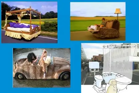 Приделать колеса и мотор можно к любому предмету и сделать автомобиль из ванны, унитаза или дивана. Этим профессионально занимаются, к примеру, в компании "Cummfy banana", специализирующейся на создании необычных автомобилей, а точнее моторизированных предметов обихода. Именно им, к примеру, принадлежит рекорд в области "Самая быстрая мебель".