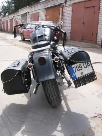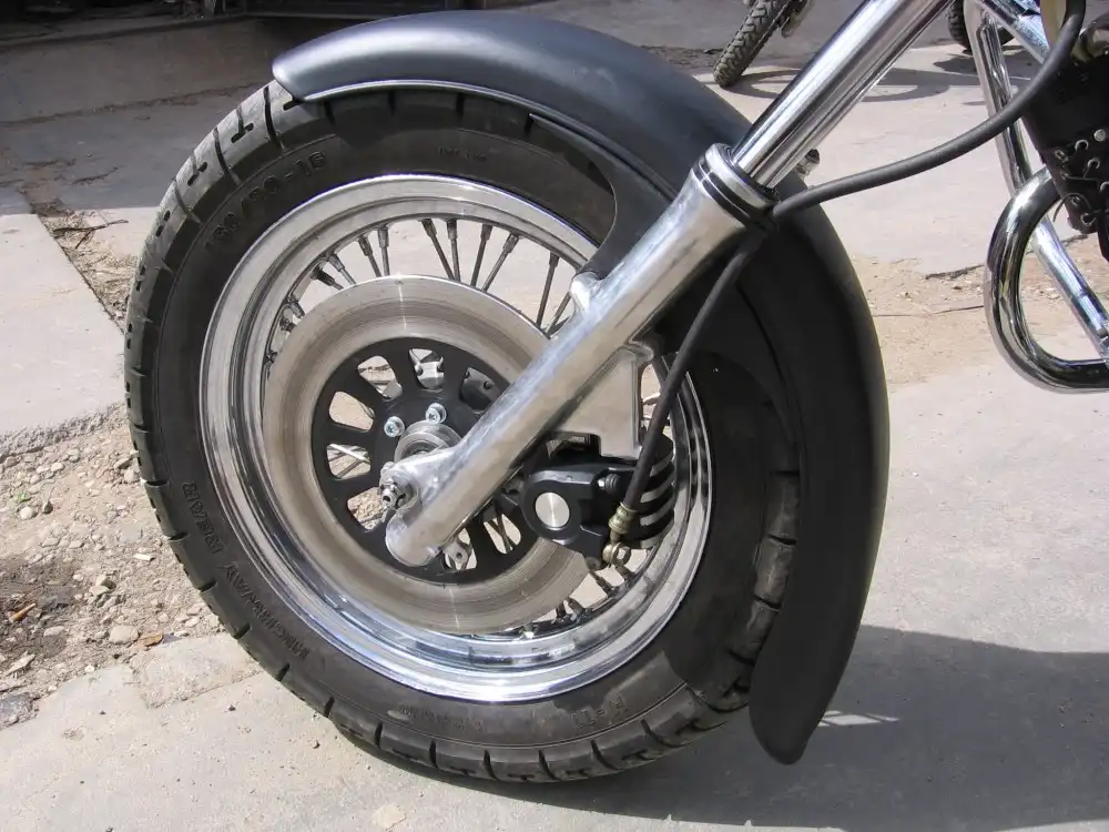Переднее колесо : обод от харлея, ступица точёная, спицы Днепр. 130/90-16 Mitas