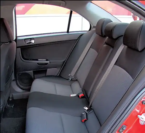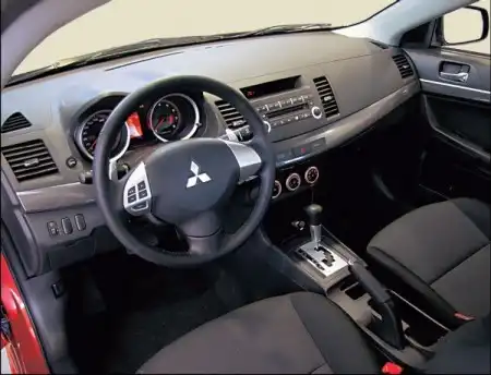 Интерьер нового Mitsubishi Lancer своей скромностью и лаконичностью никак не продолжает идеи, развиваемые вызывающим экстерьером. Его ни в коей мере нельзя назвать безликим, но в сравнении с впечатлениями от внешности бурных эмоций он не вызывает. Удобное рулевое колесо, стильная панель приборов с двумя стаканами спидометра и тахометра поразительно схожи c таковыми у Outlander XL. СD-аудио система с небольшим дисплеем в верхней части центральной консоли, удобные крутилки микроклимата с наглядными пиктограммами и интегрированными в них клавишами включения кондиционера и обогрева заднего стекла. А некоторая спортивность подчеркнута лишь красной подсветкой шкал и кнопочек.