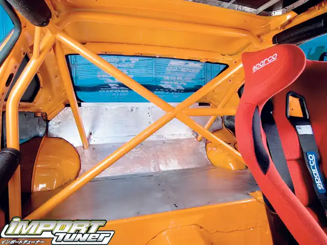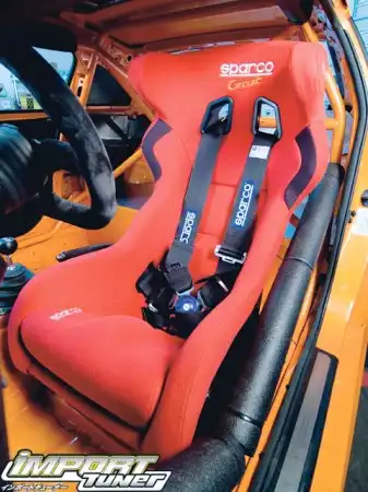 С этого G35 было снято столько родных деталей, что K&N вполне могли бы построить из них еще один G35. Трубчатый каркас был изготовлен K&N при участии гонщика Терри Борчеллер, который внес свой вклад в дизайн. Борчеллер, чемпион Grand-Am, World Challenge и American Le Mans, огласил свои требования к месту расположения дверных брусьев для защиты ног. С целью снижения веса авто, интерьер был полностью оголен: все удобства, что здесь есть, - это гоночное сиденье Sparco Circuit с ремнями Sparco и цифровая приборная панель / система сбора данных AiM Sports MXL Pista. Последняя позволяет отображать и регистрировать давление, температуру, ускорение, обороты, время прохождении дистанции и общее время: Borcheller получил возможность анализировать показатели после каждого заезда. Спроектированная специально под MXL Pista карбоновая "торпеда" получила карбоновую центральную консоль, на которой разместился ряд переключателей, а также систему управления двигателем HKS F-Con V Pro. Стекла этого G35 сделаны из лексана, а дверные панели – из карбона. С абсолютно пустым двигательным отсеком после этих изменений машина весила около 800 кг. Планируемый вес готовой к соревнованиям машины – 1260 кг.