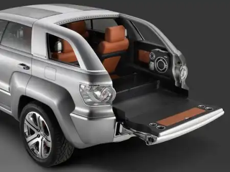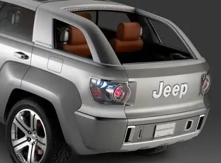 Автомобиль широкий, и колеса, сдвинутые к углам автомобиля, заключены в крепкие колесные арки, интересно выделяющиеся на фоне кузова. Практически трапецевидные по форме, но не ассиметричные, эти угловатые колесные арки с четким контуром являются новой интерпретацией одной из фундаментальных характерных черт дизайна Jeep.
