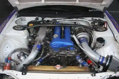 SR20DET, расширенный до 2,2 л с помощью кита от Tomei, детали двигателя Tomei, турбокомпрессор IHI F1 RX6, предохранительный клапан TiAL, регулятор давления наддува HKS 60 мм, передний интеркулер ARC, выполненный на заказ впускной коллектор, выпускной коллектор JIC, выхлопная система JIC Titanium, шестиступенчатая коробка передач Nismo, сцепление Exedy, дифференциал повышенного трения Nismo