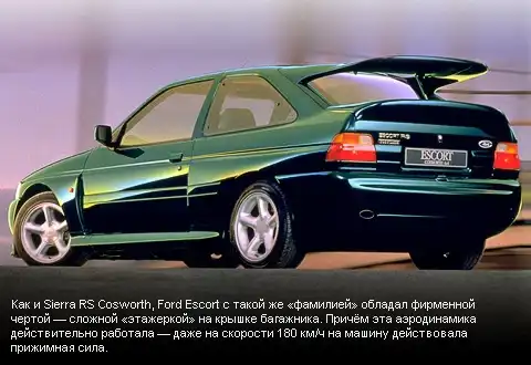 Эстафету у Сьерры подхватил Ford Escort RS Cosworth, представленный в 1992 году. Несмотря на всю внешнюю схожесть с обычным Эскортом пятого поколения, он заимствовал у него всего 50% деталей. Кузов был серьёзно доработан и отличался повышенной жёсткостью. А проверенный турбомотор мощностью всё в те же 220 сил и ходовую часть он унаследовал от полноприводной Sierra Cosworth 4×4.