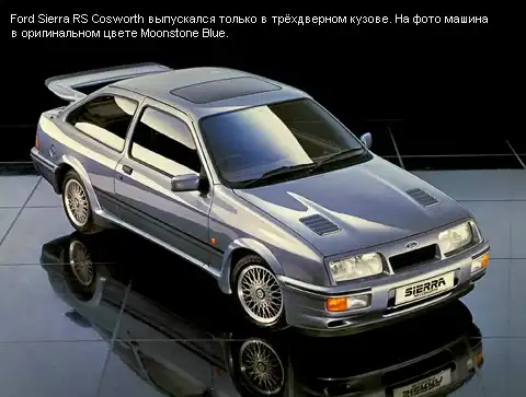 Хотя, если быть точными, то дебютной работой SVE стал 2,8-литровый инжекторный V6 для Ford Capri. И именно его впихнули в подкапотное пространство Sierra XR4i. Мотор развивал 150 «лошадок» и разгонял заднеприводную трёхдверку за 8,4 секунды до «сотни». Но отнюдь не ей суждено было стать самой мощной Сьеррой.