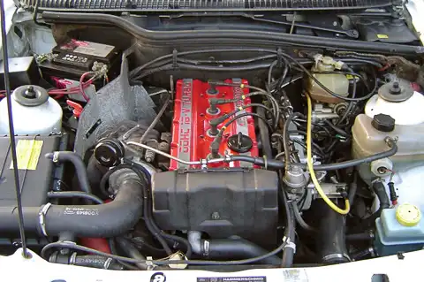 В запасниках у британцев как раз была разработка на основе двухлитрового мотора, известного под неофициальным именем Pinto, — им оснащался и раллийный Ford Escort RS2000. Но шеф SVE тогда поставил Cosworth условие — двигатель должен развивать 100 лошадиных сил с литра рабочего объёма, а 90% крутящего момента надо было сделать доступными уже при 1800 об/мин. Подобных результатов помог добиться турбонаддув.