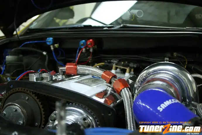 Судьба распорядилась так, что автомобиль четыре года простоял в витрине автосалона. На пятый год Даг решил приобрести этот автомобиль с приличным уже возрастом при нулевом пробеге. Для начала хозяин решил освежить внешность машины. Для этого был установлен стеклопластиковый обвес Do-Luck GTR, а стандартный капот заменен на карбонове изделие JUN. Попутно двери лишились ручек, а крылья стали ощутимо шире. Финальным аккордом стала покраска в цвет Kandy Pagan Gold, т.е. золотой с отливом красного, и нанесение винилов в стиле NFS Underground.
