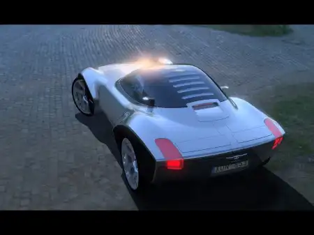 With its proportion the car is a pure 2 seated GT concept. Cockpit feeling is inspired by modern jet-fighters. The windshield/roof is hinge in the cowl area. In open position, the doors can be open independently.