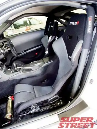 Когда речь идет о компании с такой репутацией, как у Nismo, ни одна мелочь не останется без внимания. Для максимальной эффективности на трассе стандартная подвеска была "нашпигована" койловерами R-tune, более толстыми стабилизаторами и уретановыми втулками. Колеса LM GT4, более широкие, чем те, что обычно ставят на Fairlady на заводе, одеты в резину Advan A048, самую липучую из всех липучих резин. Ну и, конечно, стандартные тормоза Brembo не обошлись без переделок: теперь здесь стоят перфорированные диски, задача которых – предотвращать "увядание" тормозов путем улучшения процесса их охлаждения.