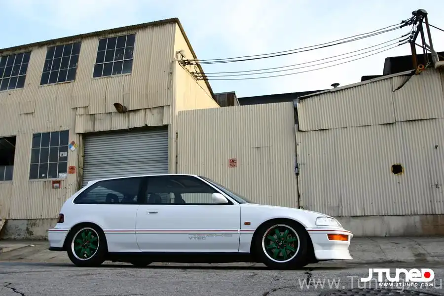 В начале своей жизни Civic носил красный костюм той формы, которую носили все его сородичи, выпущенные для американского рынка. А потом его перекрасили в фирменный цвет Honda Frost White, а внешность значительно изменилась под влиянием японских элементов экстерьера: переднего и заднего бамперов, оптики, порогов, заднего спойлера и так далее. Передний бампер дополнен "губой" от Charge Speed, что придает машине совсем другую осанку, а боковые зеркала заднего вида заменены цельными аналогами Vision Type-MC.