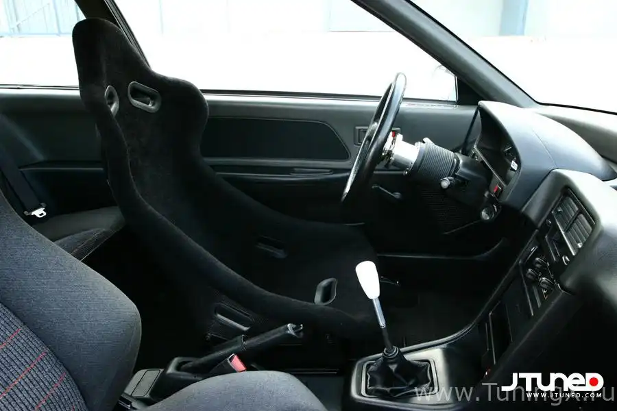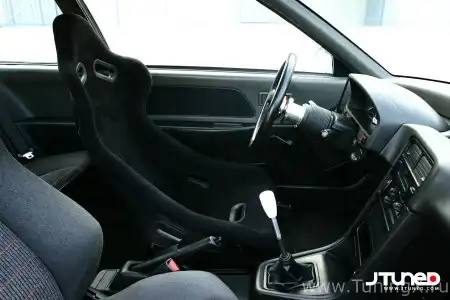 В салоне вы не обнаружите переделки на правый руль. Возможно, это единственный недочет в мании установить сюда все японское. На самом деле Чарльзу это не нужно. Без изменений, конечно, не обошлось – кресла с японского SiR заменили стандартные, а водителю достался карбоновый ковш. Еще один образец продукции Circuit Hero – это проставка ступицы рулевого колеса, а сам руль – это Mugen SW-36. Приборный щиток взят с SiR, хотя спидометр был убран в пользу аналога от Spoon Sports. Еще Чарльз заменил центральную консоль на консоль от CR-X – у нее более эргономичный дизайн, и она немного отличается от стандартной консоли Цивика, внося индивидуальность в интерьер.