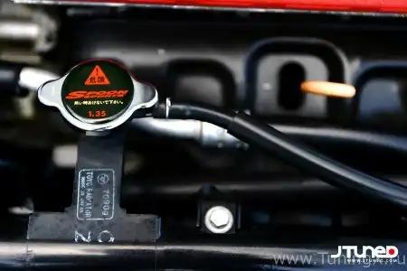 Хотя стандартную независимую подвеску с двойными рычагами, создатели которой вдохновлялись Формулой-1, не так легко убить, ее всегда можно улучшить. И Чарльз установил сюда стабилизаторы поперечной устойчивости ST, распорки стоек от Spoon, передние нижние поперечные рулевые тяги от Cusco и алюминиевые нижние рычаги той же марки – все для того, чтобы "подтянуть" качество езды. Втулки передней подвески Mugen были запрессованы, чтобы еще добавить жесткости. Когда-то Чарльз руководил маленькой компанией по производству запчастей; она называется Circuit Hero. С ее помощью он изготовил крепление главного цилиндра и заменил передние тормоза Si на другие, с более крупным главным цилиндром и суппортами с модели Civic EX. Задние тормоза Чарльз заменил на дисковые от SiR.